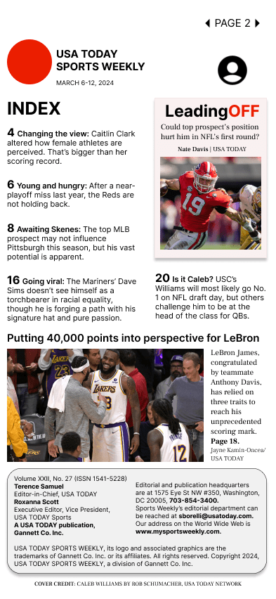 Below is several images from a recent edition. All pages that are linked in the index of the prototype are designed and available to flip through, plus a few more. Page connections have been updated in the prototype to reflect these adjustments.
